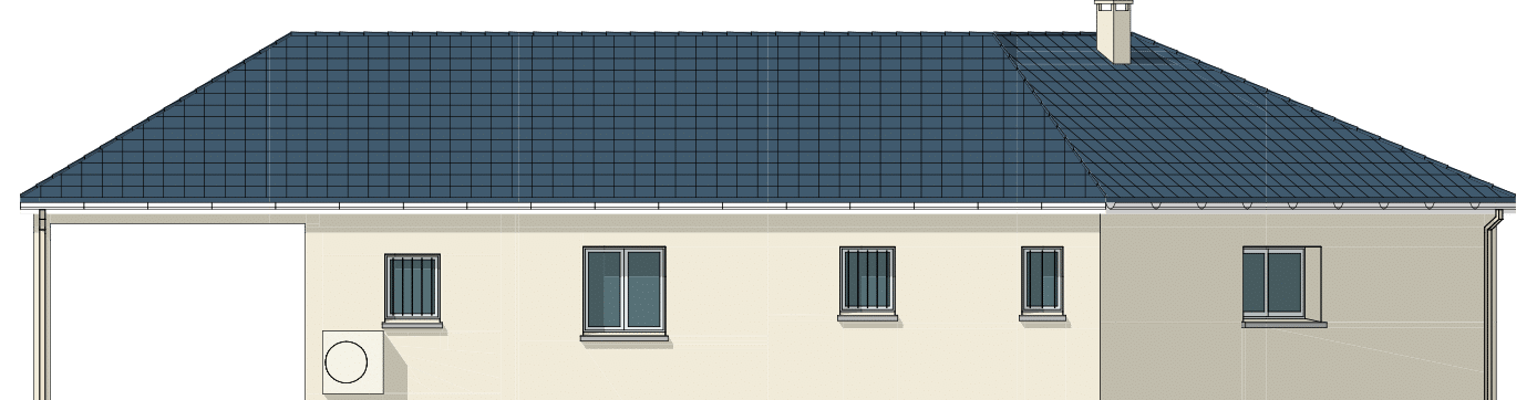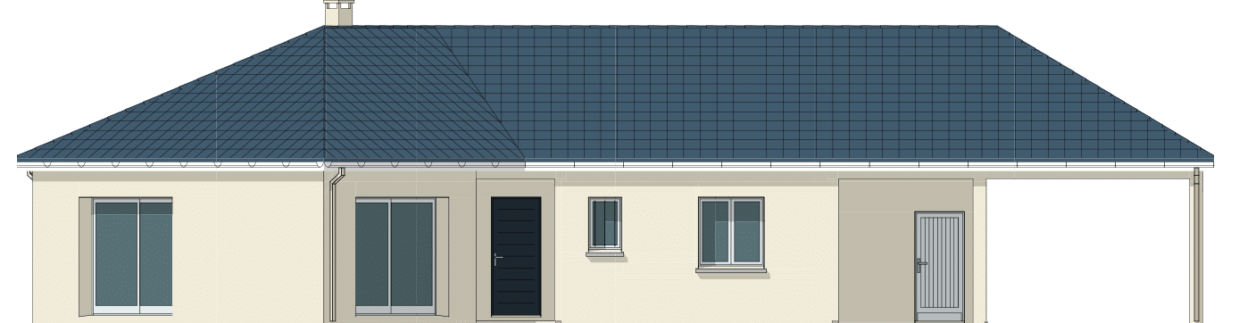 Le modèle présenté développe 84m² habitables avec une vaste pièce de vie, 2 chambres, une salle de bains, un WC, un cellier ainsi qu’un garage.
