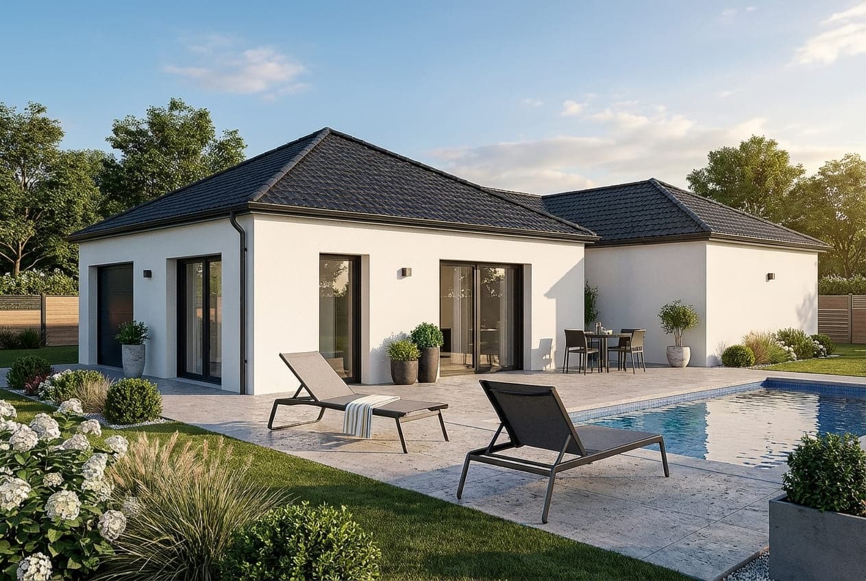 Sa conception autorise même son implantation sur des terrains présentant une façade de 8 m. Comme l’intégralité de nos modèles, cette maison de plain-pied répond aux critères de la nouvelle réglementation RE2020.
