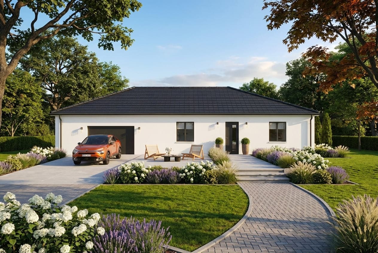 Sur ce terrain, nous vous proposons cette maison neuve : l’Intimity L de la gamme Evasihome, un confort absolu.